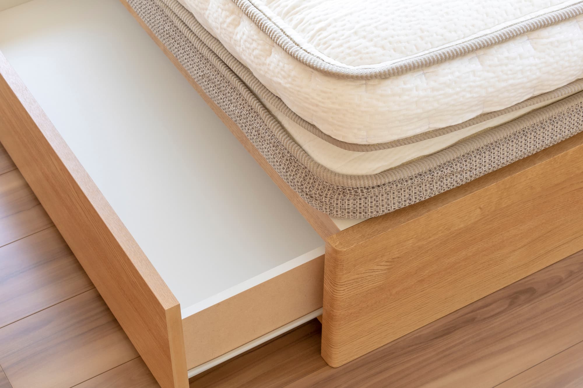 ベッド下のデッドスペースに引き出しが付いたチェストベッドや、ベッド下が大型の収納庫になる跳ね上げベッドなどがあります。洋服や寝具をまとめて収納できるため、収納がない部屋では主力の収納スペースにできるでしょう。高さのあるロフトベッドはベッド下にデスクやテレビを置けるため、狭い部屋でも広く快適に過ごせます。