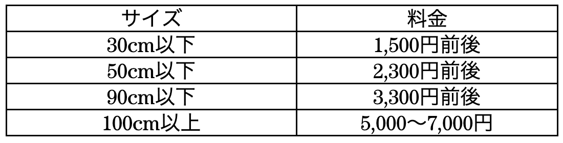 ぬいぐるみのクリーニング料金は1体あたりのサイズによって変動します。店舗によっても異なりますが、平均的な相場は以下の通りです。